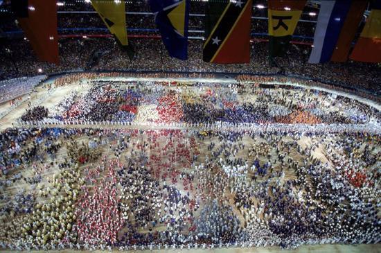 那年我20岁,正和中国男篮的一些队友在悉尼的奥运村里闲逛。当时,我们走进了一家卖照片的纪念品商店。这张是悉尼奥运会开幕式的照片,那就发生在几天之前。摄影师的拍照位置必须很高,因为那张照片是从上往下拍摄的。
