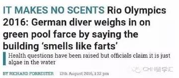 当然,这些只是网友的猜测。毕竟网友们没有在现场亲自体验一头扎进一汪绿色的感受。德国跳水选手抱怨这池水有一股屁味,而匈牙利的水球运动员直接接受了队医的紧急处理。